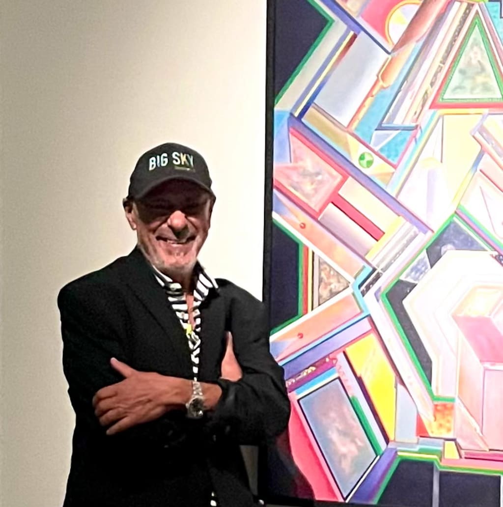 Over the decades, Carulo’s style has shifted dramatically. Earlier works blended ancient symbolism—particularly forms reminiscent of Inca imagery—with futuristic figures. Today his paintings move deeper into cosmic territory, his fascination with astrophysics and quantum mechanics driving much of this imagery.