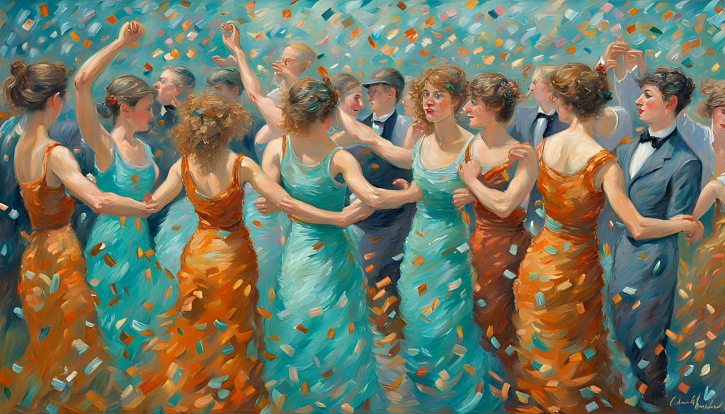 Sixthday, the sixth started gloriously, sleeping in, getting ready at her leisure, and busting in on Abbie instead of the other way around. After a long, relaxed morning and a real breakfast, not just a coffee and a pastry, everyone attending Viv’s party started getting ready. Everyone except Harriet from their little block of apartments was invited. She had never actually met Viv. The party wasn’t for hours, but getting ready was half of the fun. Frannie and Abbie opened their doors, and the girls all brought their dresses and makeup and went between the two for the most part.