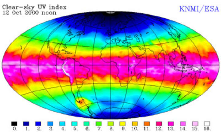 that UV intensity is about 40% higher than at comparable latitudes in southern Europe or the United States. In summer, UV index values there regularly exceed 13 even in the south of the country.