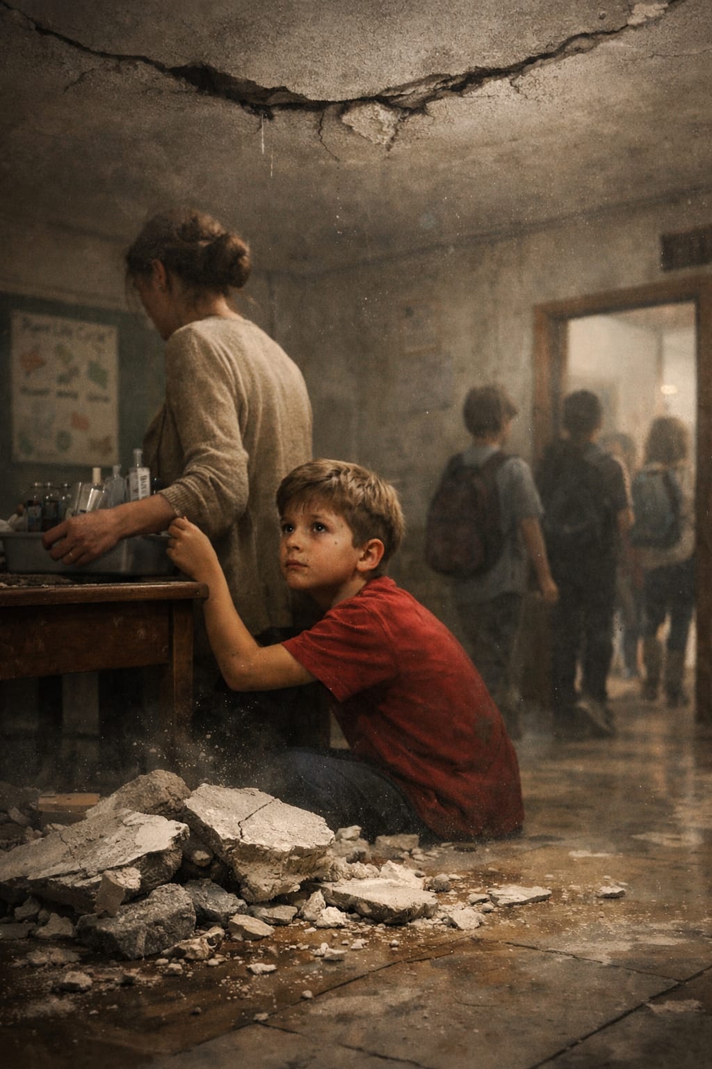 Brian tugged at the teacher's sleeve. "The ceiling's about to..."