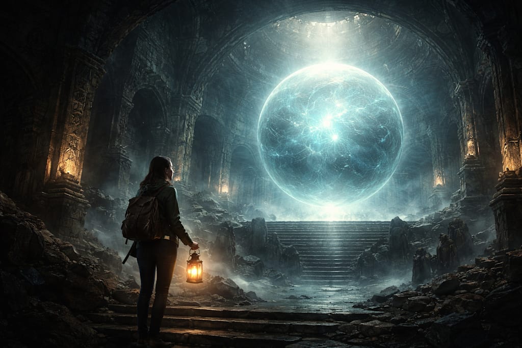 At its heart was a massive sphere, suspended in the air without support. It pulsed faintly, like a living thing. The hum she had heard was coming from it.