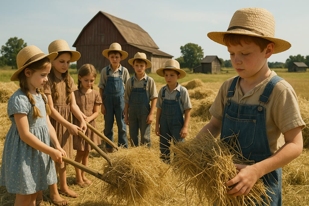In earlier farm-centered life, children were also dependents, of course, but they were not only that. As they grew, they became part of the household labor force. They gathered eggs, carried water, watched younger siblings, fed animals, hauled supplies, shelled peas, pulled weeds, helped preserve food, and learned the steady repetitive tasks that kept a household functioning. This wasn't considered cruelty, it was considered reality.