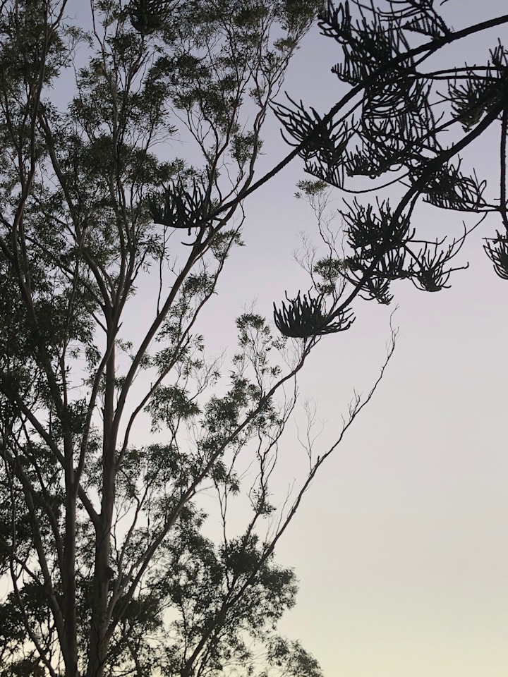 Pine branches and gums trees lift their limbs heavenward.
