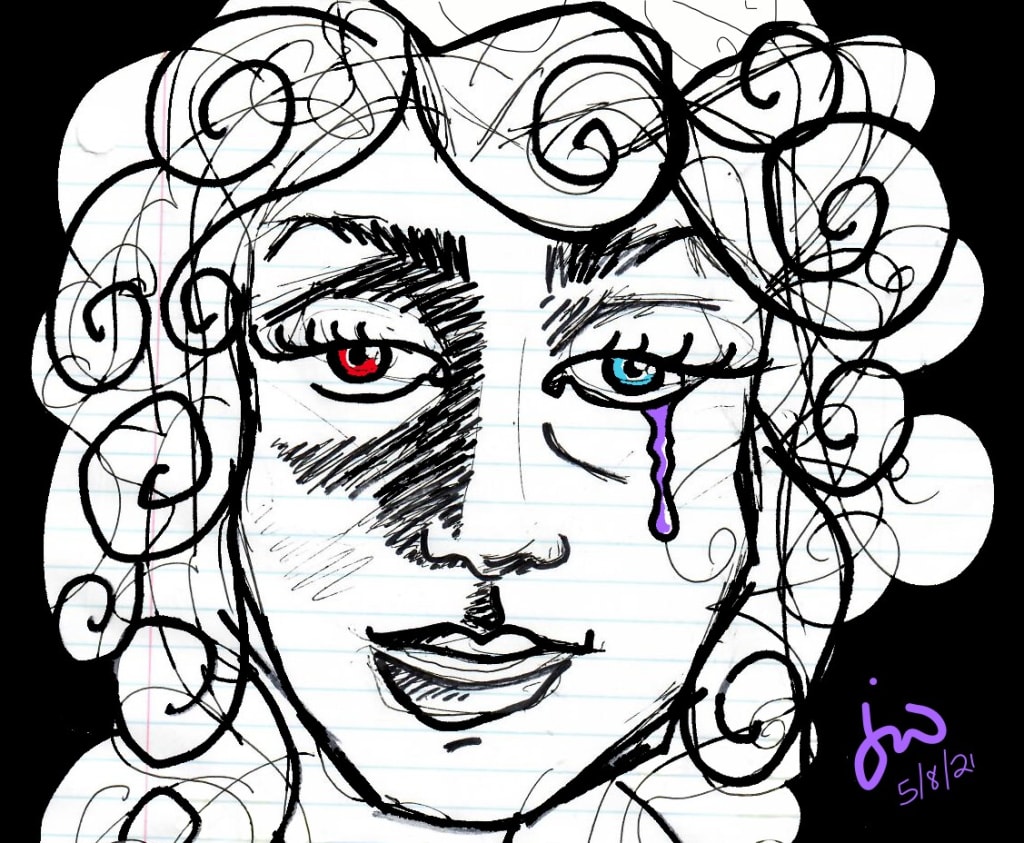 bleeding blue and red.