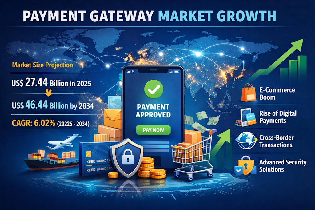 According to Renub Research, the Payment Gateway Market is expected to grow from US$ 27.44 billion in 2025 to US$ 46.44 billion by 2034, expanding at a CAGR of 6.02% from 2026 to 2034. This growth reflects more than rising online shopping — it signals a deeper structural shift in how businesses and consumers interact financially across the world.