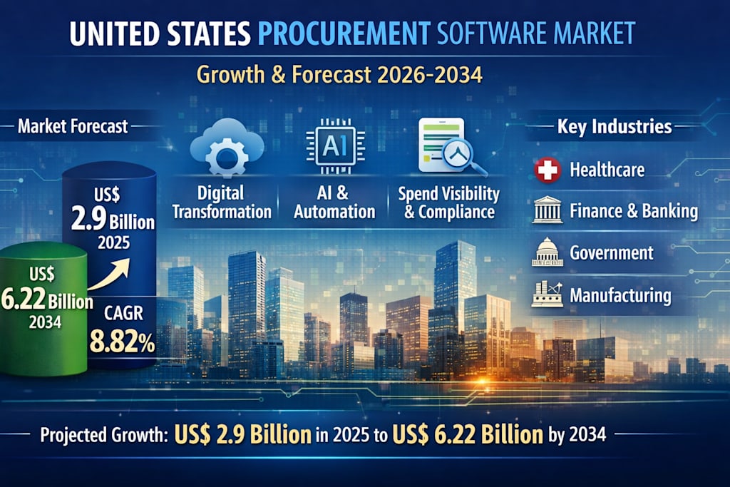 That shift is translating into real market momentum. According to the market information you provided, the United States Procurement Software Market is projected to grow from US$ 2.9 billion in 2025 to US$ 6.22 billion by 2034, expanding at a CAGR of 8.82% from 2026 to 2034
